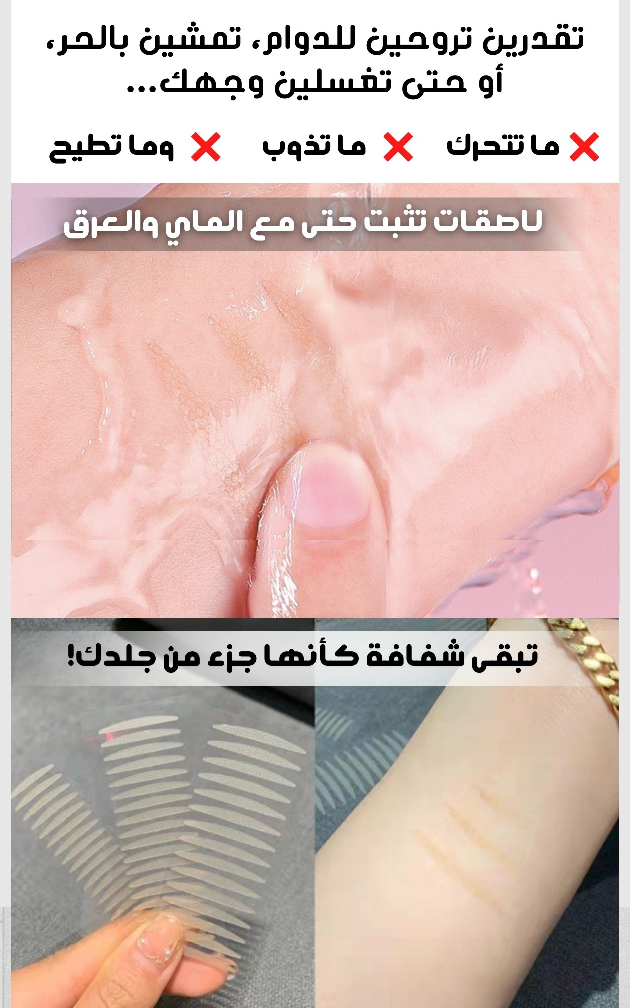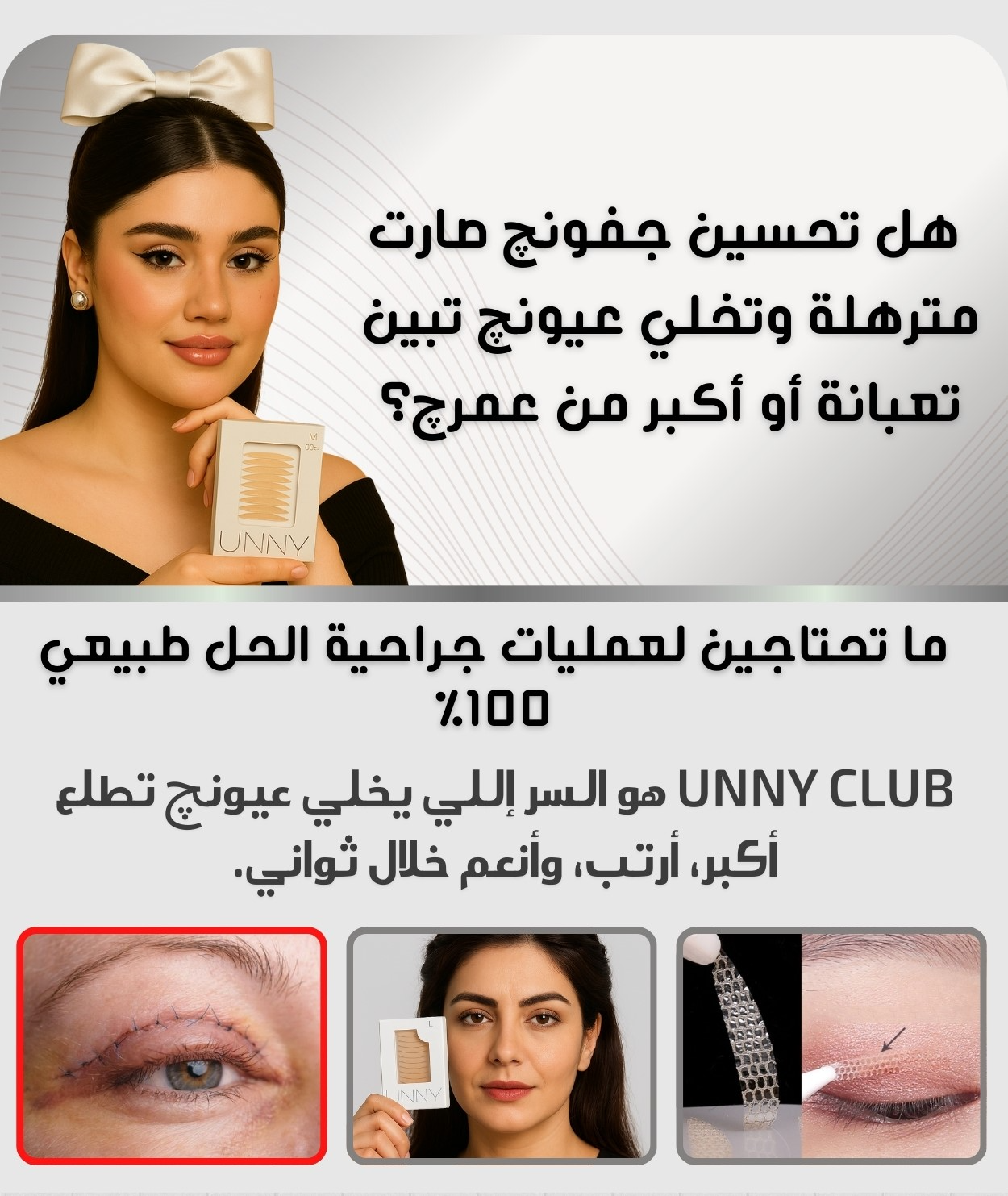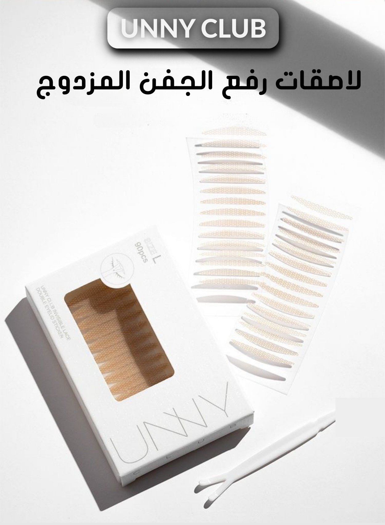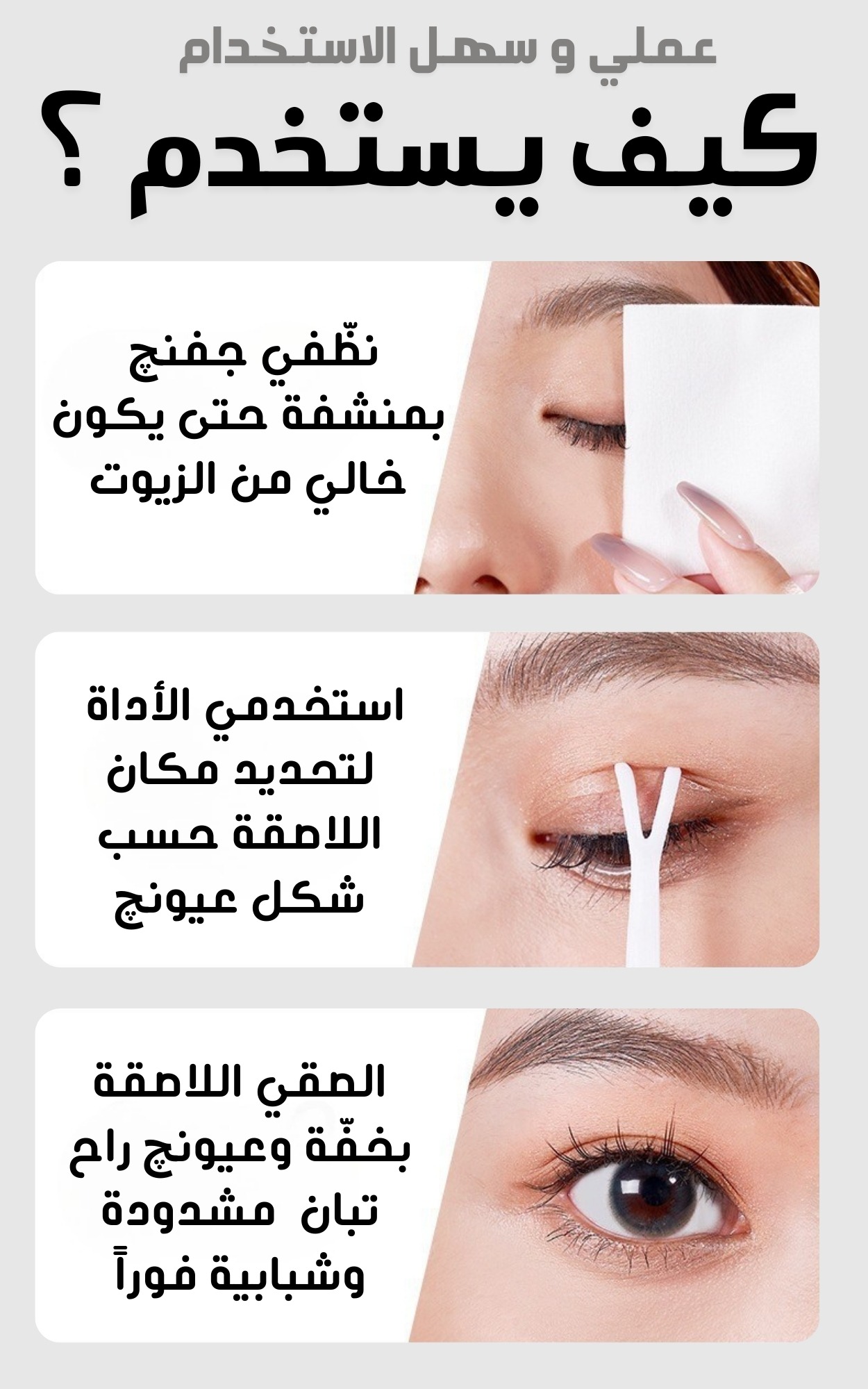 - إزالة اللصقة: لإزالة اللصقة، اسحبيها بلطف من الزاوية الخارجية للعين باتجاه الداخل.